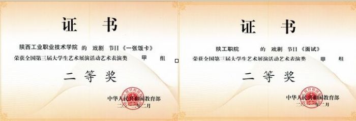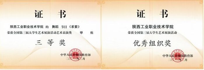 会上还颁发了我院在全国第三届大学生艺术展演的获奖证书