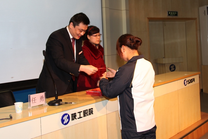 3月3日,我院91级优秀校友——陕西雅兰寝室用品有限公司(陕西雅兰纺织集团)总经理任勇先生,为获得2011年度“任勇奖学金”的十名同学颁发了奖学金及荣誉证书。纺织染化学院、服装艺术学院400余名学生参加了“任勇奖学金”发放仪式。发放仪式由学生处副处长张智清主持。