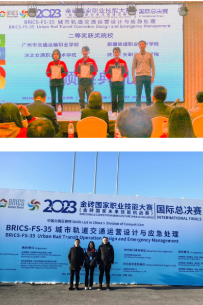 11月10日-12日,2023金砖国家职业技能大赛国际总决赛“城市轨道交通运营设计与应急处理”于吉林省吉林铁道职业技术学院成功举办,金砖国家共计45支代表队(含国际队)同台竞技,我校土木工程学院王蕾老师领队,黎豪老师指导的城轨运营2201班学生王欢语在赛场上拼搏四小时,最终荣获二等奖,黎豪老师获评优秀指导教师。本次获奖实现了该专业在金砖国家技能大赛国赛零的突破。